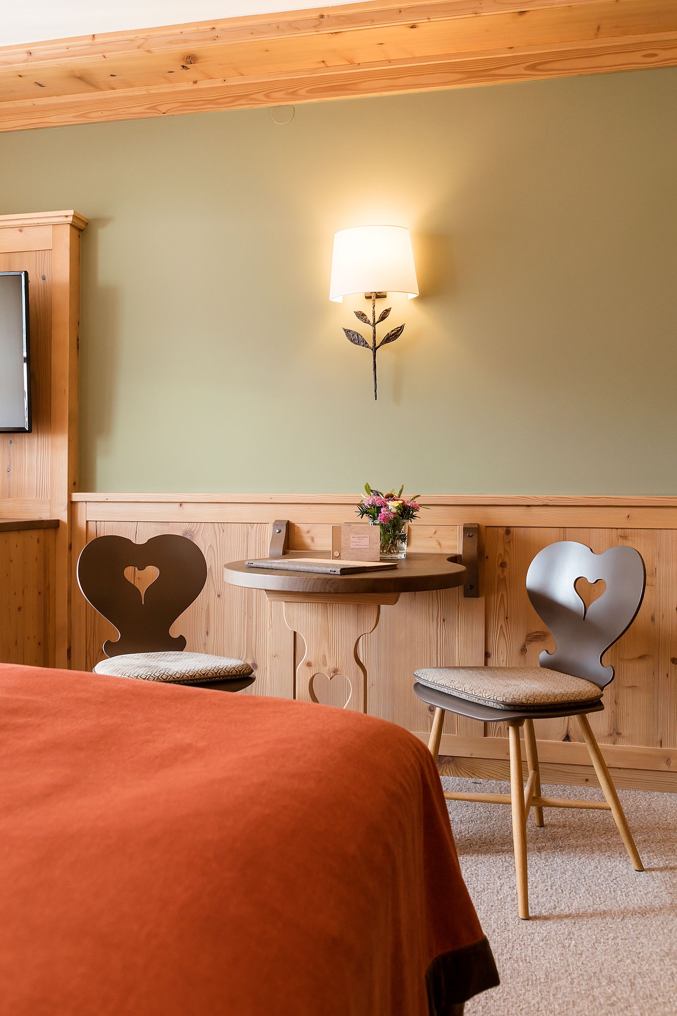Hochwertige Materialen in Kombination mit den Altholzelementen und der ganz besonderen Farbgebung in Erdtönen – unsere Doppelzimmer sind alles andere als Standard! Die modernen Badezimmer mit edlem Steinzeug werden Ihre Sinne ebenso verwöhnen, wie das besonders exklusiv ausgestattete Zimmer oder die Schaukelstühle auf dem Balkon. Unsere komplett neu gestalteten Doppelzimmer präsentieren Ihnen auf 25 m² einen Eingangsbereich mit Garderobe und geräumigem Vollholzschrank, ein äußerst geschmackvoll eingerichtetes Zimmer mit Doppelbett und Sitzecke sowie ein modernes Badezimmer mit Dusche. Jedes Zimmer verfügt über einen Balkon. Auf Wunsch können wir in diesem Zimmer zwei separate Betten anstatt des Doppelbetts anbieten.