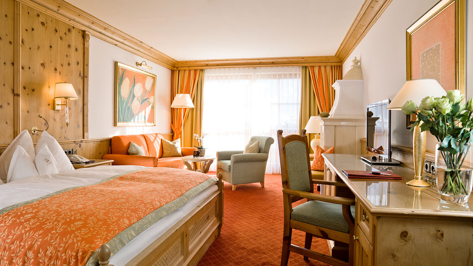 Auf 30 m² erwarten Sie ein freundlicher Eingangsbereich mit Garderobe und großzügigen Kleiderschränken, ein wunderschönes Wohn-/Schlafzimmer mit Doppelbett und Sitzecke sowie ein großes, elegantes Badezimmer mit Wanne und separater Regendusche. Der französische Balkon überblickt den Schmittenbach, dessen Gebirgswasser nur wenige Schritte vom Hotel entfernt in den Zeller See mündet.